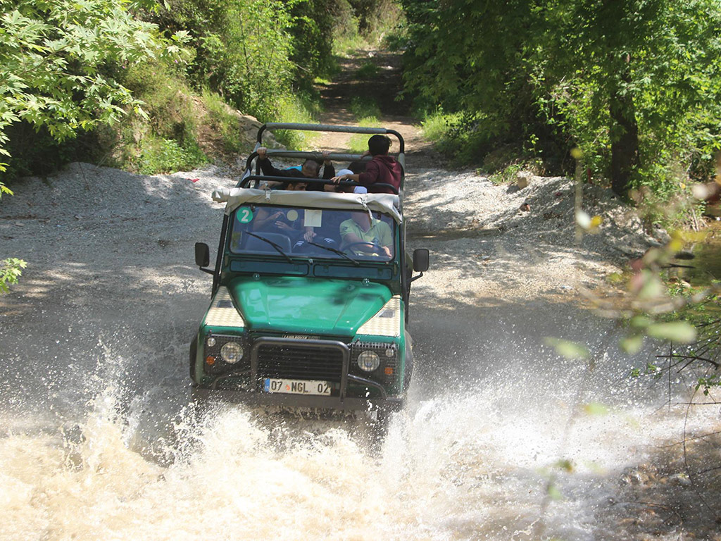 In the morning hop onto the jeep safari, starting with a stop which gives you a panoramic view over Alanya. During the safari there’s a chance to see the amazing scenery of the countryside, and the Taurus Mountains with citrus farms, wild herbs such as scented thyme and dill and numerous small villages. After taking another quick stop at a nomadic tent, be exhilarated with a dusty ride off-road.