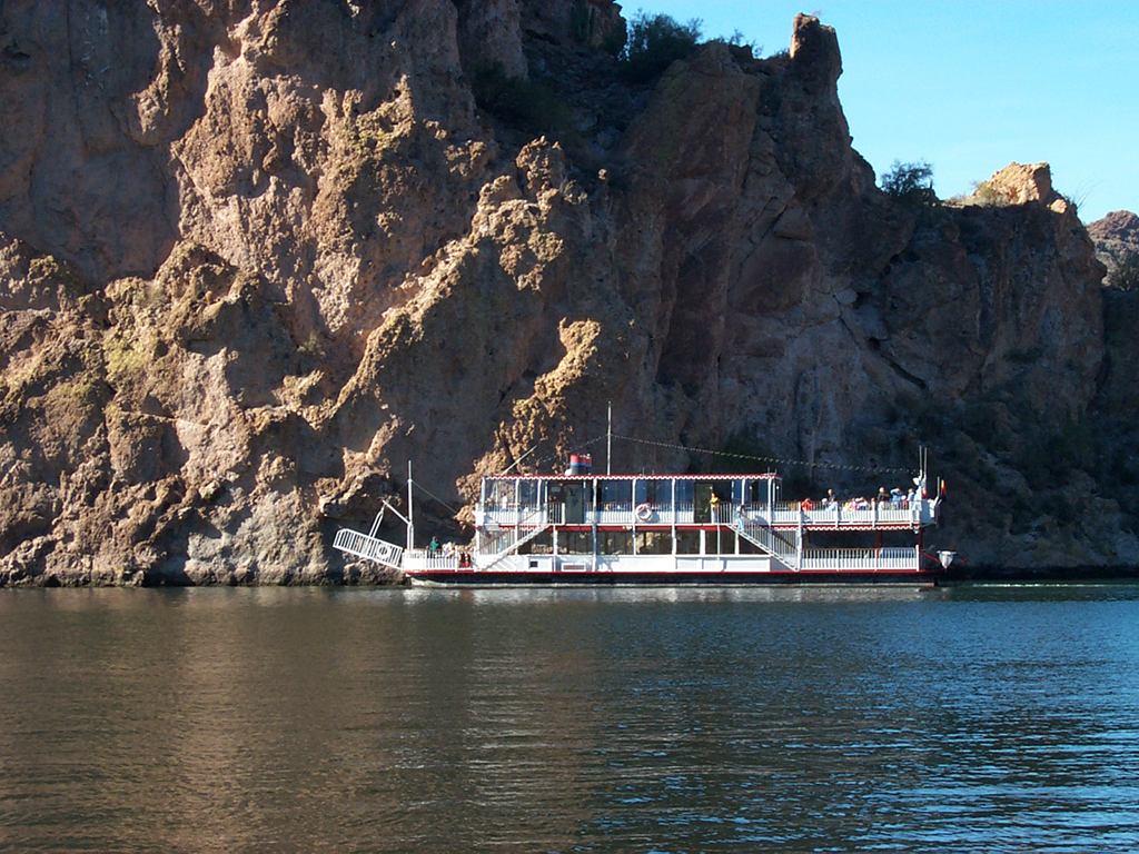 Then head to the dazzling Canyon Lake in the heart of the wilderness for a six mile narrated nature cruise on the famous Dolly Steamboat. Keep your eyes peeled for the diverse wildlife found in this area such as bald eagles, big horn sheep and many other desert dwellers. Admire the 1300 foot volcanic cliff walls of the lake before continuing your tour to Tortilla Flat, the last surviving stage coach stop of the Apache Trail.