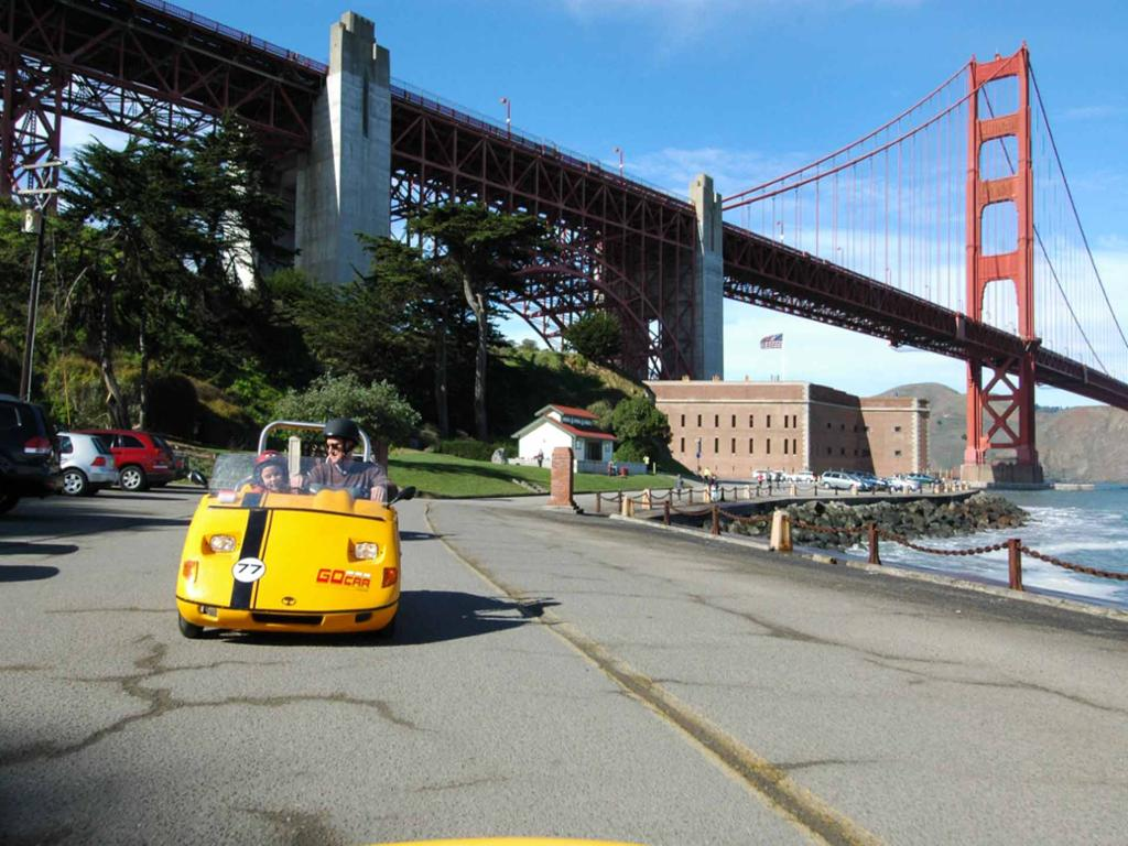 Snap panoramic photos along the Pacific Ocean and see the Golden Gate Bridge up close from every possible angle. You can park your GoCar and take a stroll along the span of the 1.7-mile long bridge.