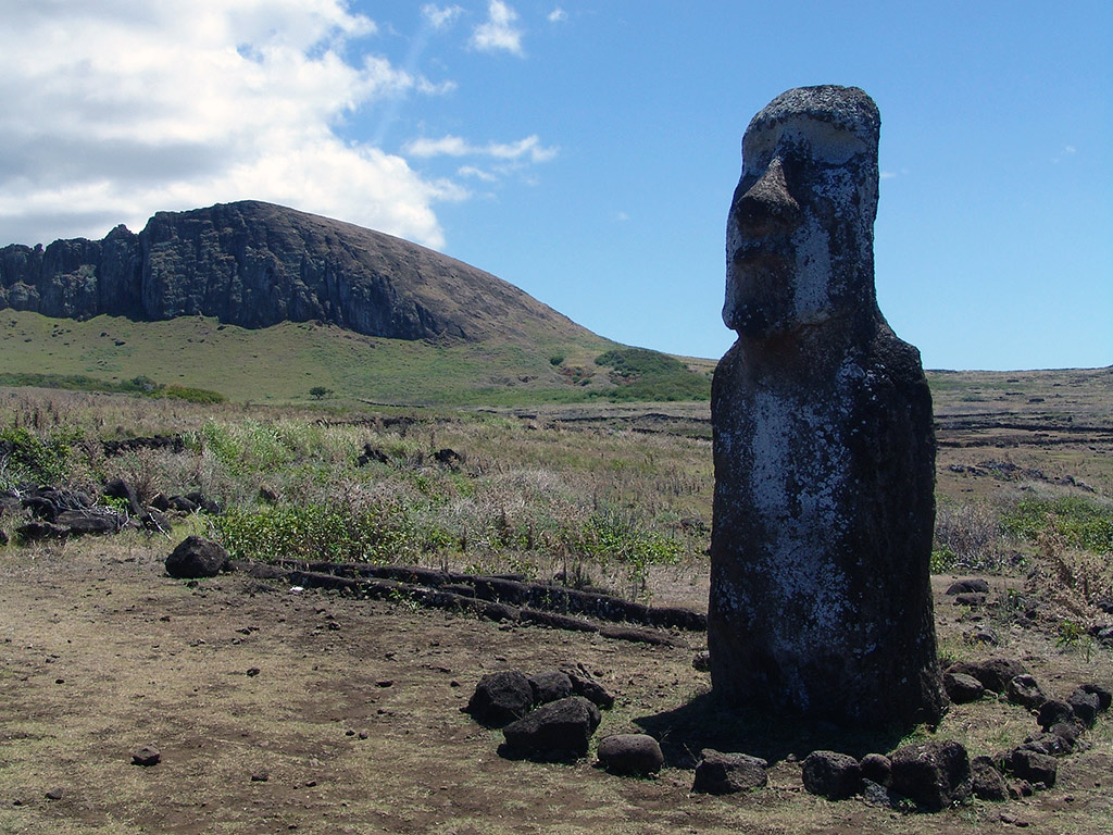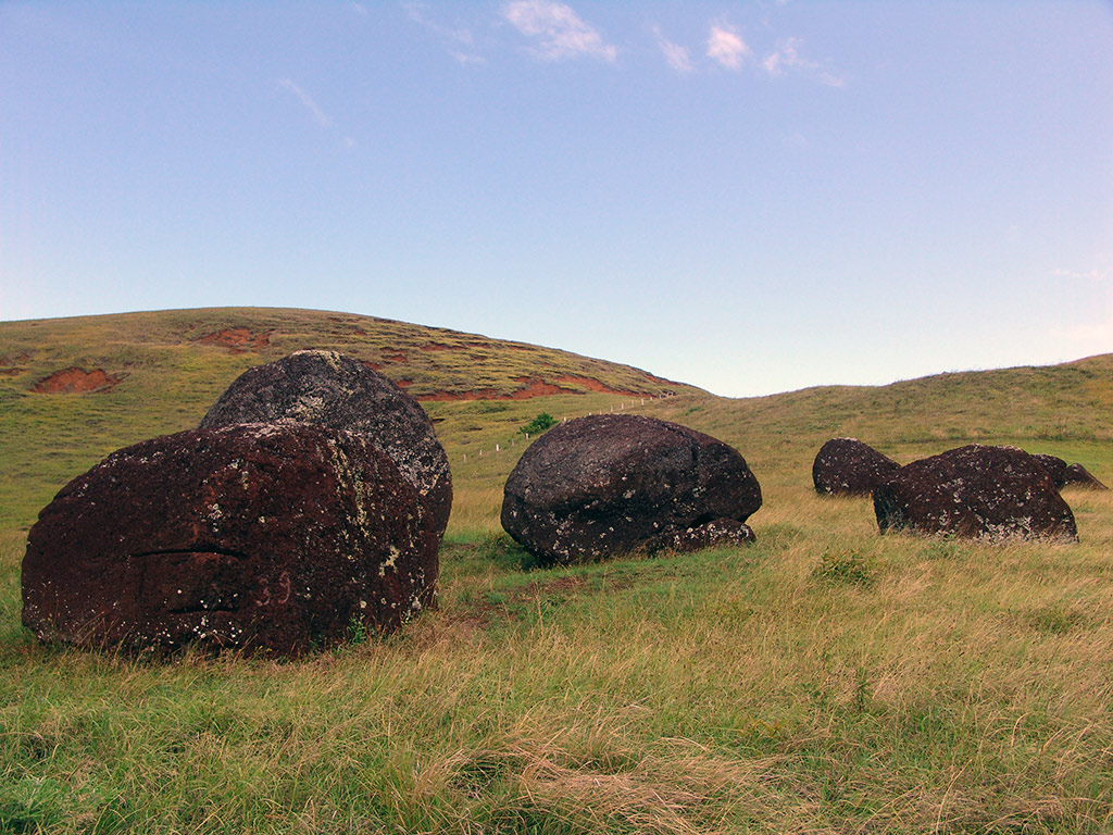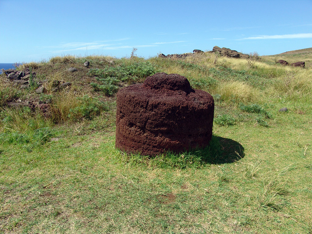 After this visit will continue Puna Pau, red scoria small crater in which were made the Pukao: hats or crowns of the moai. Finally we will visit a particular platform with only one moai, but who has 20 fingers (or 4 hands) at Huri an Urenga. This statue is also peculiar because is firmly lined to the winter solstice. This platform is located at what we now consider the entrance of the Hanga roa town from the Anakena road.