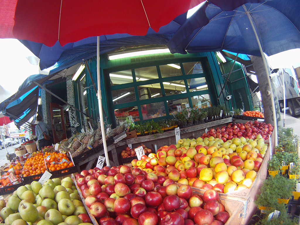 Kensington Market has a very similar story: it owes its splashes of colour and flavours to countless waves of immigrant settlers that arrived in Canada over the last 100 years. One can easily recognize most parts of the world at this thriving market. Oh, and by the way, the prize characteristic: not a McDonald’s or Starbucks in sight. It’s a true 100% marketplace. And it’s also beautiful: its bare brick walls are covered with layer upon layer of urban art and graffiti murals.