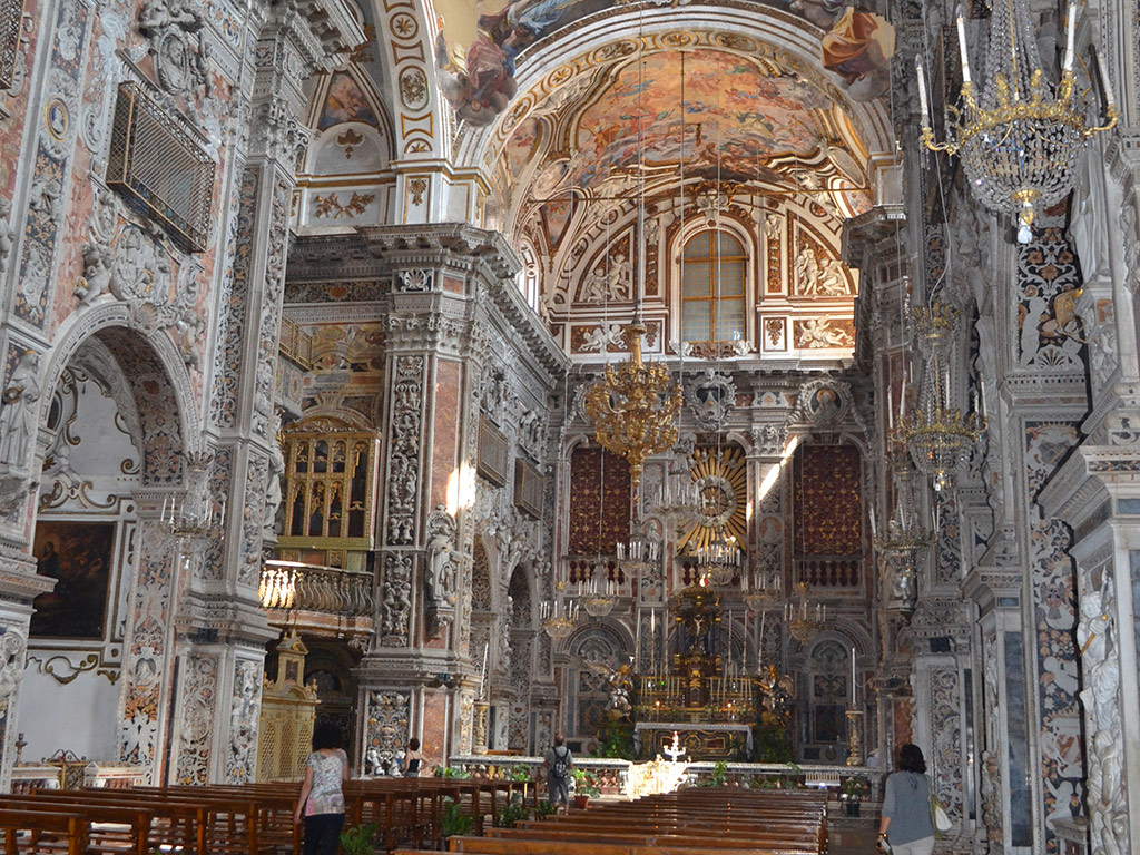 We'll soon reach the square decorated by the beautiful Gothic rose window of the church Saint Francis of Assisi. There we will discover the richest and darkest centuries of Sicilian history between the social criticism of the Serpotta's stuccos in the Oratory of San Lorenzo, and the noble furnishings, collections and stables of Palazzo Mirto.