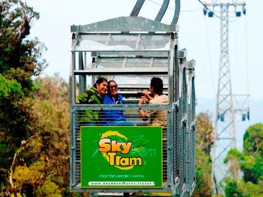 Afterwards, you enjoy the Sky Tram. It is a guided tour, and you get the opportunity of an intermediate ride with short stops to observe the cloud forest biodiversity; the Arenal, Tenorio, Miravalles and Orosi Volcanoes; the Nicoya Gulf; and the Guanacaste Plain, if the weather permitting. The gondolas have been adapted for people with some disability.