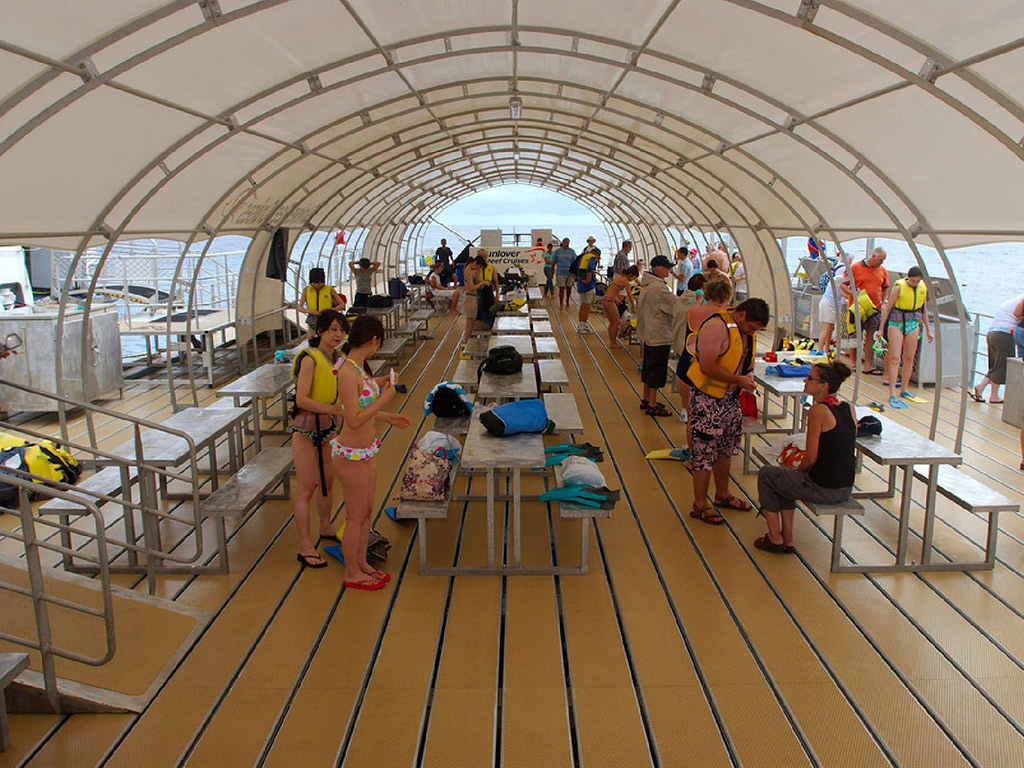 Snorkel from the beach and swim in the warm, reef waters. View the coral reef from the Glass Bottom Boat. Witness the stunning spectacle of the marine world - get acquainted with tropical fish, clams and anemones! View the coral reef and prolific tropical fish from the semi-submarine. Perhaps visit Marineland Melanesia - a fascinating walk through a nautical museum featuring crocodiles, tropical marine aquariums and Melanesian artefacts (own expense). Enjoy a delicious buffet lunch on board. Relax on the sandy beach. Redeem informationVoucher type: Not neededVoucherless. You don’t need to bring any voucher (digital or printed)!.LocationStart point: Reef Fleet Terminal - - - Cairns - AUPlease ensure you arrive at the meeting point at least 10 minutes prior to the Tour start time. Please call the supplier 48 hours prior to activity date to confirm interaction time.End point: Same as the starting pointScheduleOpening dates08:30Duration: 8,5 HoursGuide optionsGuide type: Guide