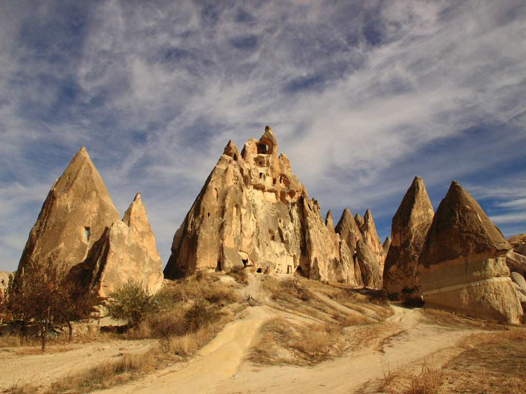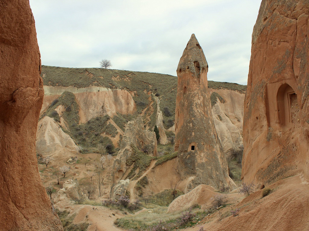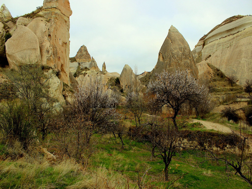 There are many different types of flowers in summer in the valley and you will see various, strange rock formations, some like fairy chimneys as well as old houses carved out of the rocks.