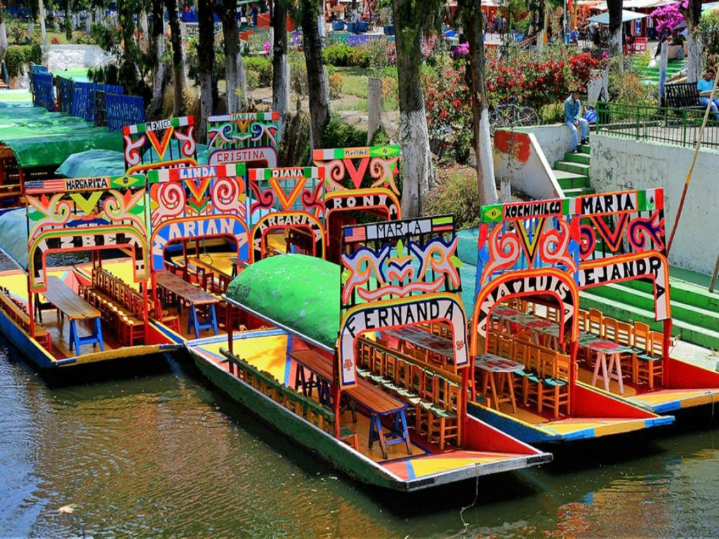 Afterwards, head to Xochimilco, also known as "The place of flowers". With a deep history going back to pre-Hispanic times, you will be amazed by its monuments, markets, local crafts, beautiful flowers and enjoy a ride along the river aboard a traditional colourful trajinera (a flat-bottomed boat).