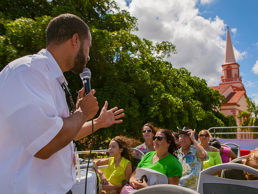 Biscayne Bay Boat Cruise: Hop-off the bus at Stop #1 at any time throughout the day to get the sightseeing Boat Cruise.