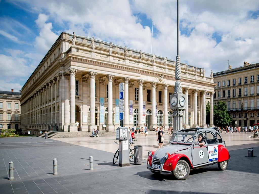 When there are several 2CVs, we drive in convoy. Redeem informationVoucher type: PrintedPrinted Voucher. Print and bring the voucher to enjoy the activity.LocationStart point: Bordeaux Tourist OfficeIf hotel pick up is not available for your hotel, please proceed to the above mentioned address.. Hotel pick-up available from hotels in central Bordeaux.. Please reconfirm the exact pick up point and time with the supplier at least 24 hours prior to confirmed tour date.. Please ensure you arrive at the meeting point at least 15 minutes before the scheduled departure time.End point: Same as the starting pointScheduleOpening dates20:00 - 22:30Duration: 45 MinutesGuide optionsGuide type: GuideTips type: OptionalRequirementsIf there are more than 3 of you, your party will be split up. Please confirm with the supplier the pick up time and hotel name.