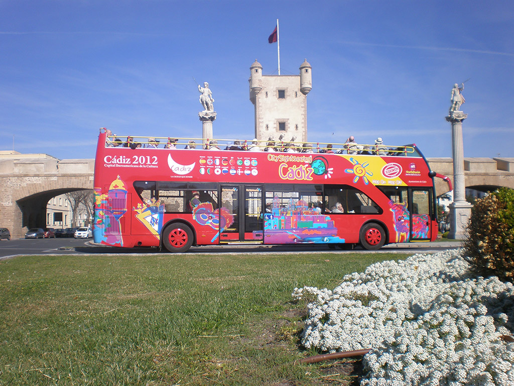 Discover the best sites in Cadiz from an open-top double-decker panoramic bus. Once a launching point for ships sailing across the Ocean to the New World, the 3,000-year old city of Cadiz is now famous for the picturesque, Southern-Spanish charm of its old central quarter. Discover the best sites in Cadiz from an open-top double-decker panoramic bus. Once a launching point for ships sailing across the Ocean to the New World, the 3,000-year old city of Cadiz is now famous for the picturesque, Southern-Spanish charm of its old central quarter.Travel around Cádiz on the top deck of our double-decker buses. City Sightseeing Cádiz takes you around the city and along the coast. If you wish to visit one of the city’s most famous landmarks, the Cathedral, just hop off at bus stop 7. The Plaza de la Catedral houses both the Cathedral and the baroque Santiago church, built in 1635. Lovers of architecture and culture may also wish to visit any number of the city’s other churches including Iglesia de la Palma, Iglesia del Carmen, Iglesia del Rosario, Iglesia de San Antonio and Iglesia de Santo Domingo.