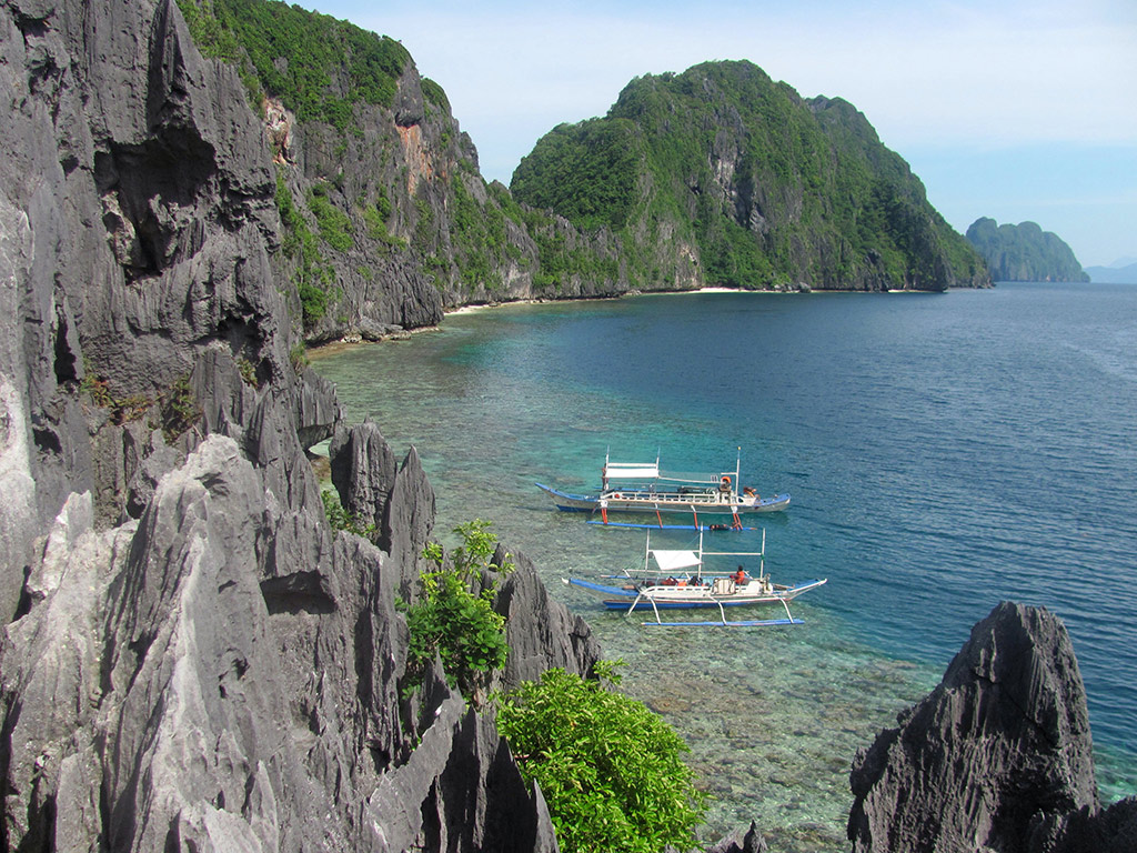 Tapiutan Island - Further out of the bay facing the South China Sea, Tapiutan's rich marine life provides opportunities for scuba diving and snorkelling. One of the most striking islands in El Nido because of its shape and sheer limestone walls.