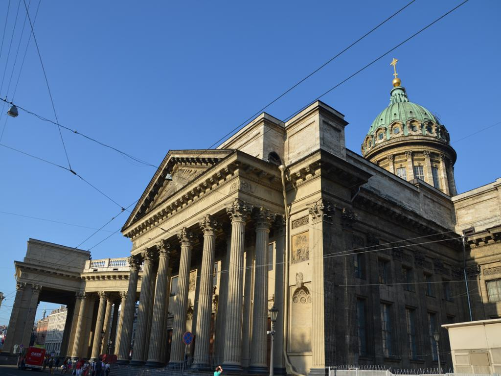 The facades are decorated with sculptures and massive granite columns (made of single pieces of red granite), while the interiors dazzle the eye with mosaic icons, paintings and columns made of malachite.