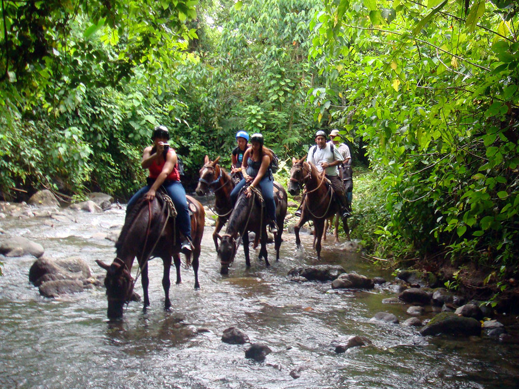 The horseback ride lasts about 3 hours starting at the foot of the mountain and going up through secondary forest terrains and cattle fields as well as crossing through a beautiful primary forest area that takes us to a beautiful iris lagoon.
