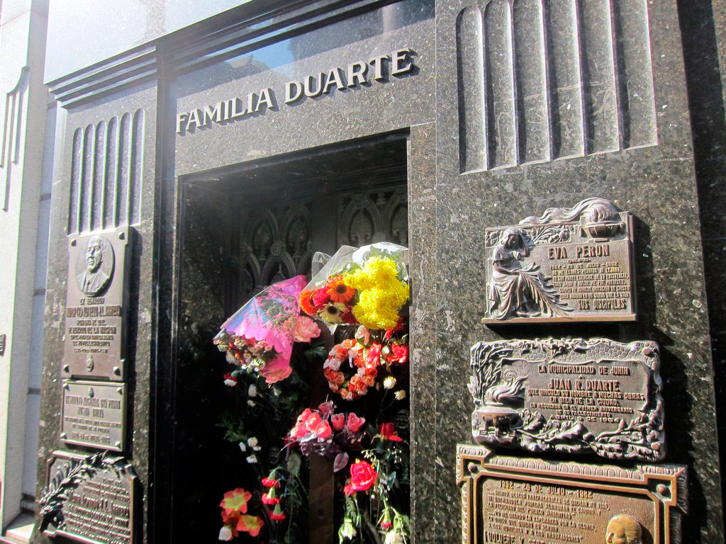 As happens in major cities that stand out in the world for its prolific activity (cultural, artistic, scientific or political), Buenos Aires has several people who became internationally famous people, to become icons. In this tour we will be able to learn about the life of two of the most influencial people in the history of Argentina: Eva Duarte de Perón, former first lady of the Republic and an advocator on behalf the labor and women rights; and Jorge Luis Borges, writer, essayist, poet and translator, and a key figure in Spanish-language literature. Once everyone has been picked up from their different hotels, we will travel through Avenida 9 de Julio and Recoleta neighborhood and hear the story of Eva Peron´s life. After this introduction, we will arrive at the Recoleta cemetery and enjoy a 30 minute walking tour through the cemetery. The guided visit will lead us to the mausoleums of the main historic characters of the Argentine history such as Marcelo T. de Alvear, president from 1922 to 1928, and Raul Alfonsin, the first Argentine president democratically elected in 1983 following the military government. We will also see the mausoleum of Evita and her family. Then we will discover the heart of Palermo that combines a bohemian atmosphere with the forefront of design and Palermo Hollywood that stands out for its film studios, television production companies and radios. In this neighborhood it will be highlighted, the life and work of the writer Jorge Luis Borges, where he spent his childhood and where wrote his most famous novels. The tour finishes with the visit of the Evita Museum, at which you will be able to gain a deeper understanding of the life and work of one of the most important women in Argentina. This is the perfect tour for those seeking to learn more about an important era of Argentine history combined with an afternoon of sightseeing. Languages Spanish, English and Portuguese. Redeem informationVoucher type: E-VoucherE-voucher. Show the voucher on your mobile device to enjoy the activity.LocationStart point: Hotel pickupEnd point: city centreScheduleDuration: 4 HoursGuide optionsGuide type: Guide