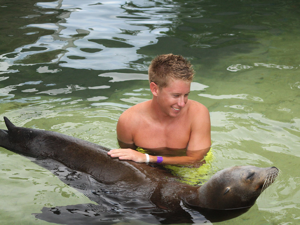 Swim - Get into the water, swim and do trained behaviors with these fun loving animals. Activity includes 20 minute orientation and 30 minute animal interaction time.